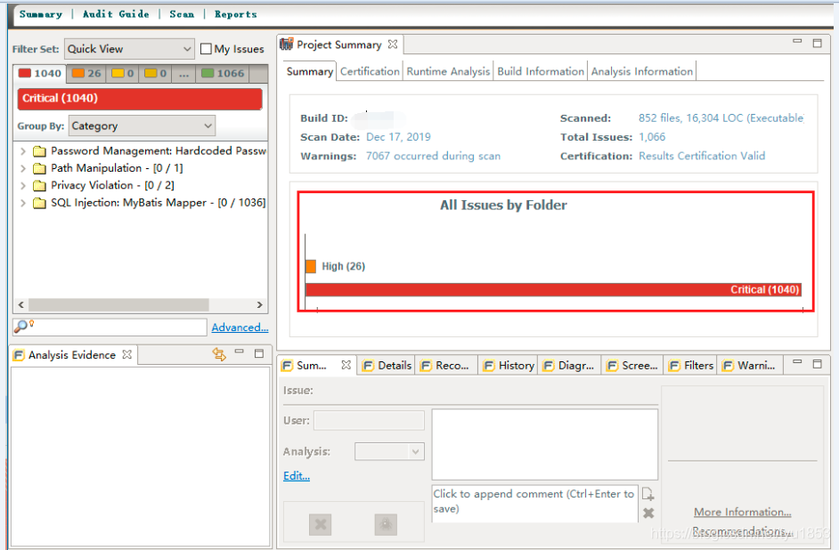 7、扫描结束后,显示扫描结果。到此使用Fortify 17.10进行源代码漏扫的方法就介绍完了。