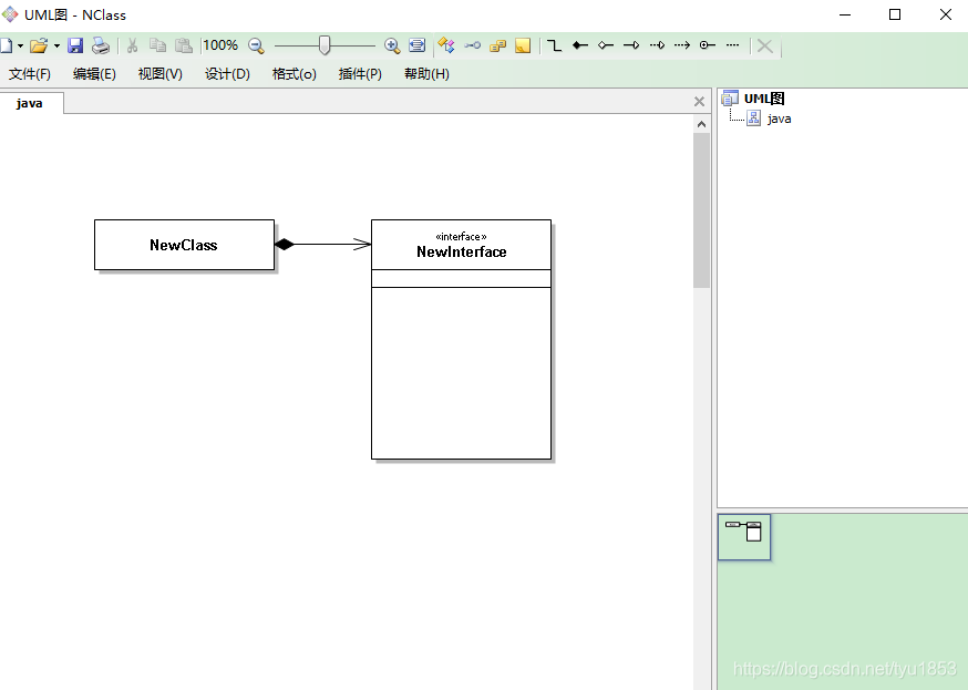 step 2 在打开的NClass界面汇总,可以添加你需要的类图或接口,可以根据项目需要设计编写你的UML图了