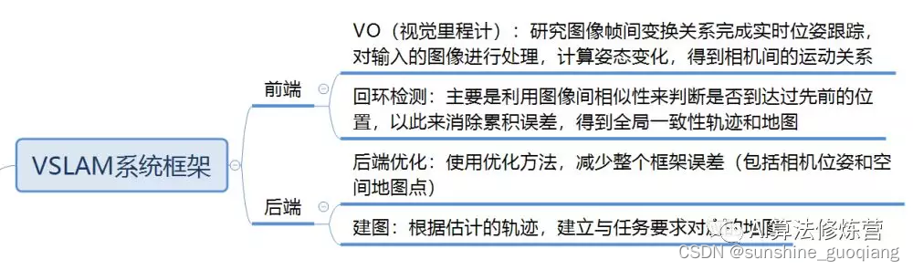 1. 通常的惯例是把 VSLAM 分为前端和后端。前端为视觉里程计和回环检测,相当于是对图像数据进行关联;后端是对前端输出的结果进行优化,利用滤波或非线性优化理论,得到最优的位姿估计和全局一致性地图。 1 前端:图像数…