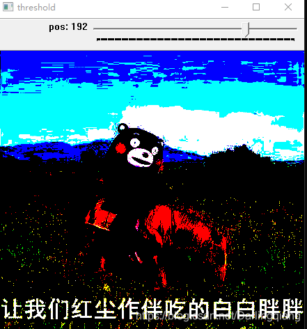 {//强制类型转换Mat srcImage = *(cv::Mat*)(data);Mat dstImage;//根据拖动条的值对传入图像进行二值化threshold(srcImage, dstImage, pos, 255, 0);imshow("threshold", dstImage);