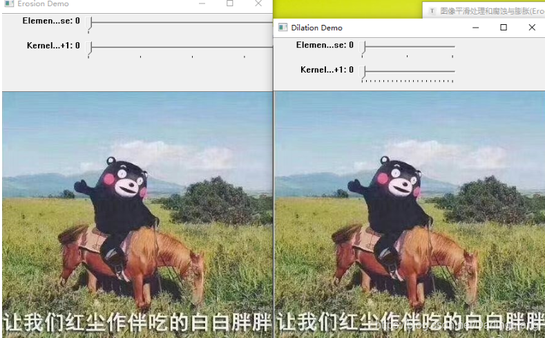 每当任一标尺被移动, 用户函数 Morphology_Operations 就会被调用,该函数获取trackbar的当前值运行指定操作并更新显示结果图像。