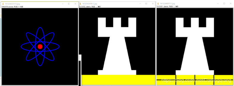 int main(int argc, char** argv) {/// 窗口名字char atom_window[] = "Drawing 1: Atom";char rook_window[] = "Drawing 2: Rook";/// 创建空全黑像素的空图像Mat atom_image = Mat::zeros(w, w, CV_8UC3);Mat rook_image = Mat::zeros(w, w, CV_8UC3);/// 1. 画一个简单的原子。