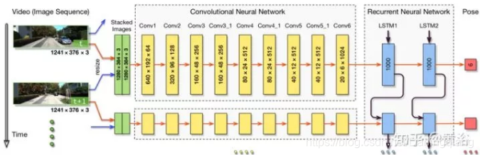 DeepVO基于深度递归卷积神经网络(RCNN)提出了一种端到端单目视觉里程计(VO)框架。由于以端到端的方式进行训练和部署,因此它直接从一系列原始RGB图像(视频)中推断出姿态,而不采用传统VO流水线中的任何模块。基于RCNN,它不仅通过CNN自动学习VO问题的有效特征表示,而且用深度递归神经网络隐式地建模串联动力学和关系。