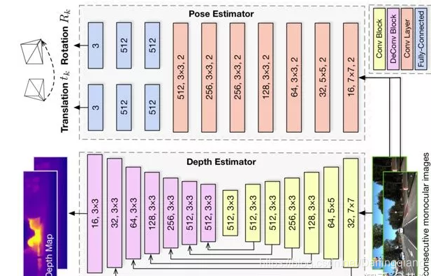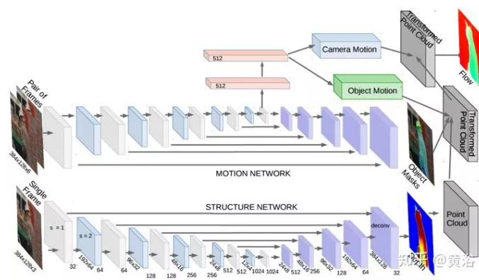 SfM-Net是一种用于视频运动估计几何觉察的神经网络,根据场景、目标深度、相机运动、3D目标旋转和平移等来分解帧像素运动。给定一图像帧序列,SfM-Net预测深度、分割、相机和刚体运动,并转换为密集的帧到帧运动场(光流),可以及时地对帧进行差分变形以匹配像素和反向传播。该模型可以通过不同程度的监督进行训练:1)通过重投影光度误差(完全无监督)自我监督训练,2)自身运动(摄像机运动)监督训练,或3)由深度图(例如,RGBD传感器)监督训练。