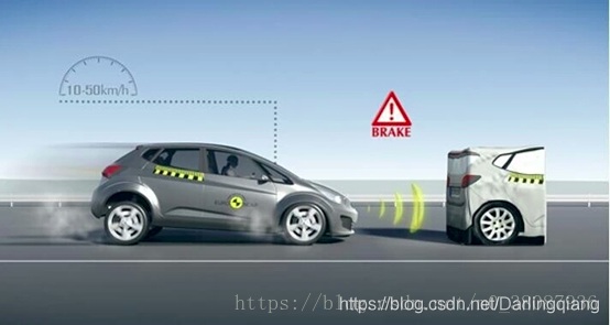 自动紧急制动(Autonomous Emergency Braking,AEB),是一种汽车主动安全辅助功能。AEB系统利用毫米波雷达测出与前车或者障碍物的距离,然后利用数据分析模块将测出的距离与警报距离、安全距离进行比较,小于警报距离时就进行警报提示,而小于安全距离时即使在驾驶员没有来得及踩制动踏板的情况下,AEB系统也会启动,使汽车自动制动,从而确保驾驶安全。