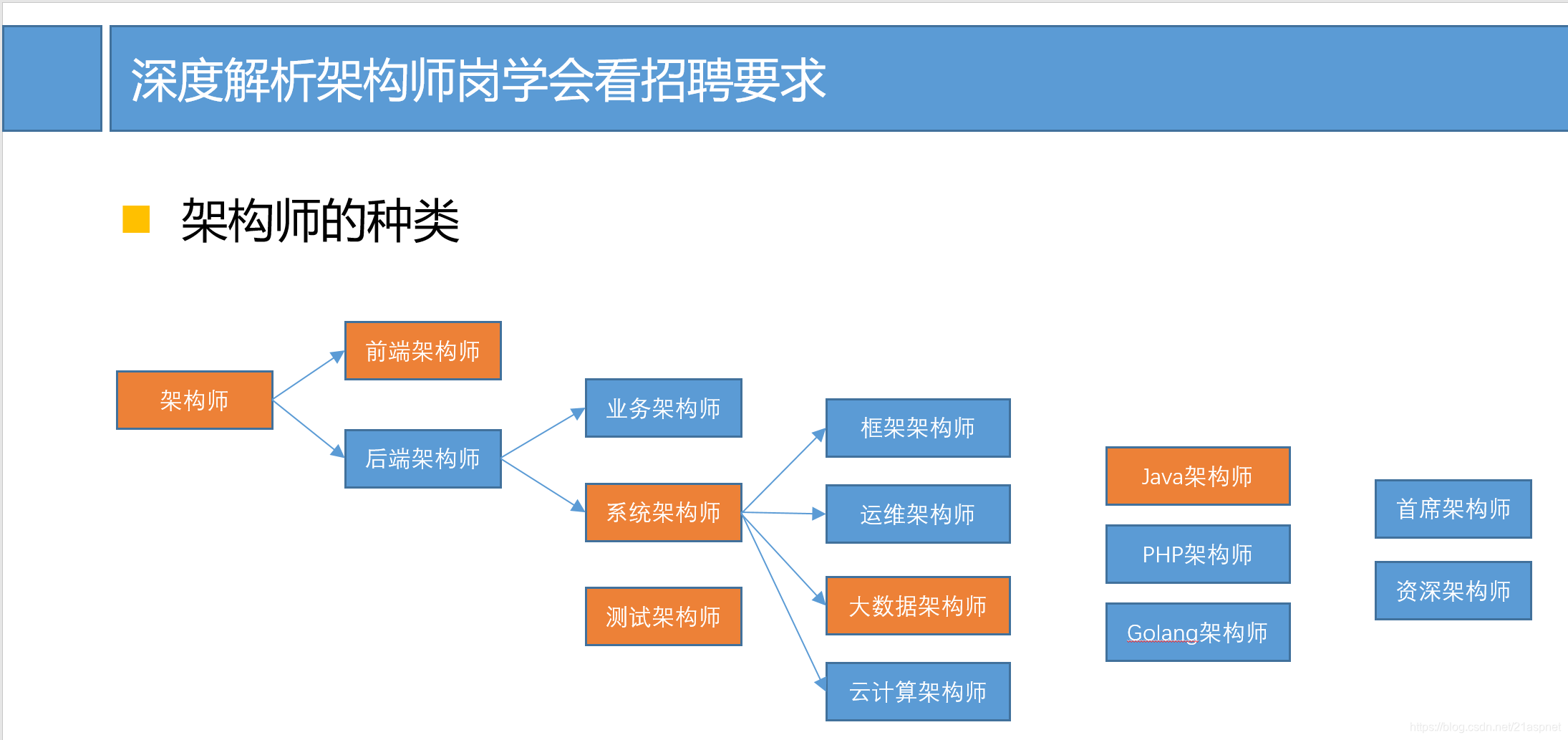 架构师的种类现在已经分类很细了,很多求职者准备面试架构师,却根本不了解架构师分为哪些,架构师的日常职责,工作内容,架构师要不要写代码?这些重要问题都没有想明白,如果从工程师转型架构师就很难通过。