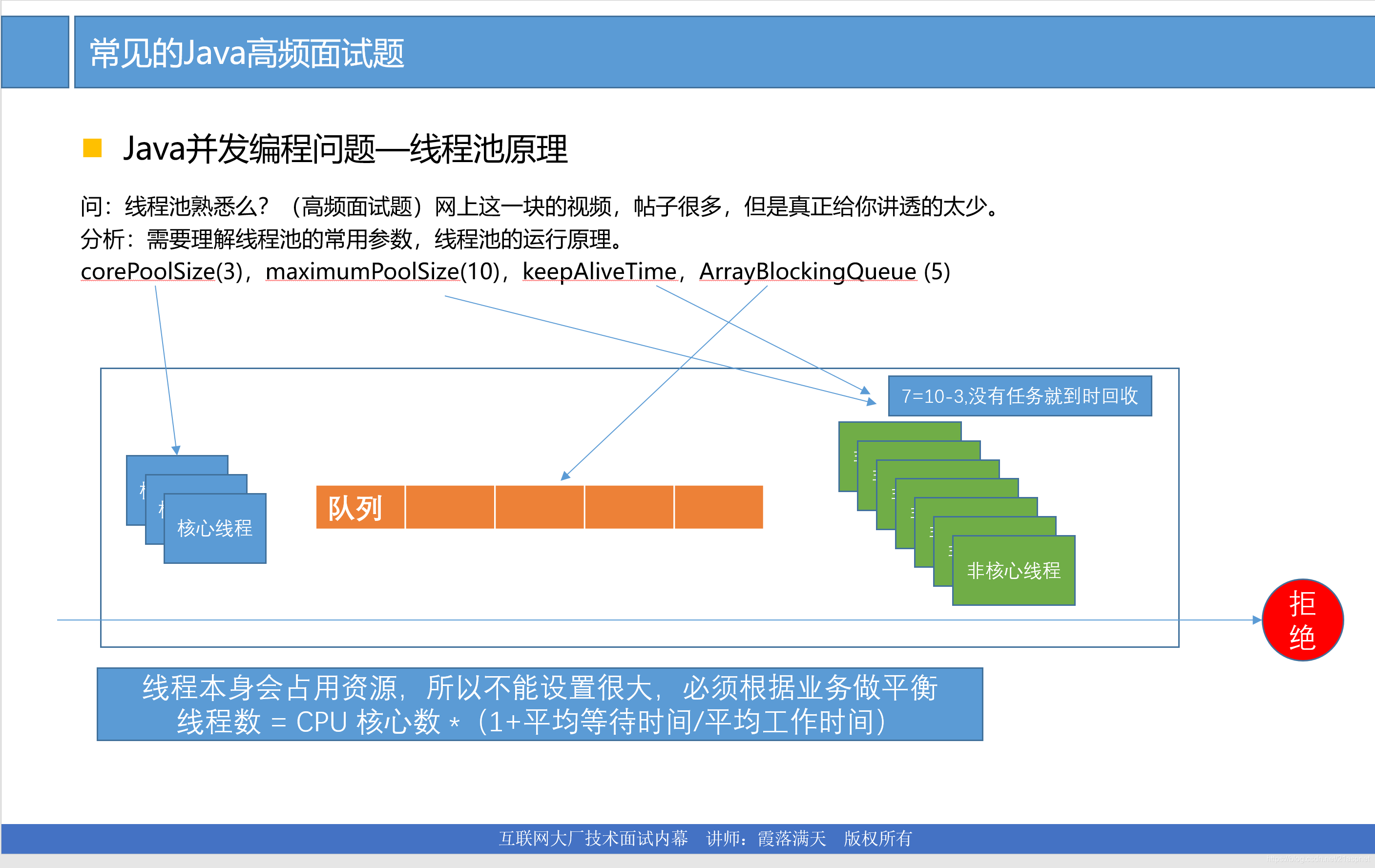 这里截取一点课程中的Java高频面试题分享,例如线程池是面试中经常被问到的,但是很多同学看了很多资料还是搞不清楚。