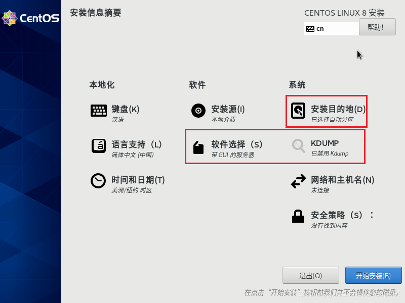 由于CentOS8和CentOS7安装界面基本是相似的这里只选择一些不一样的地方