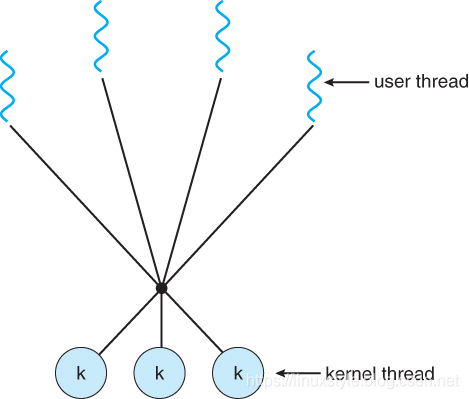 由于单个内核线程只能在单个CPU上运行,因此多对一模型不允许在多个CPU之间拆分单个进程。
