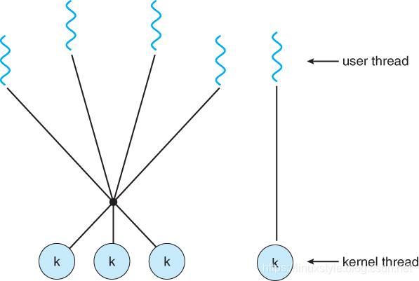 先说多线程模型,参考经典教材《Operating System Concepts , Silberschatz ,9th edition》