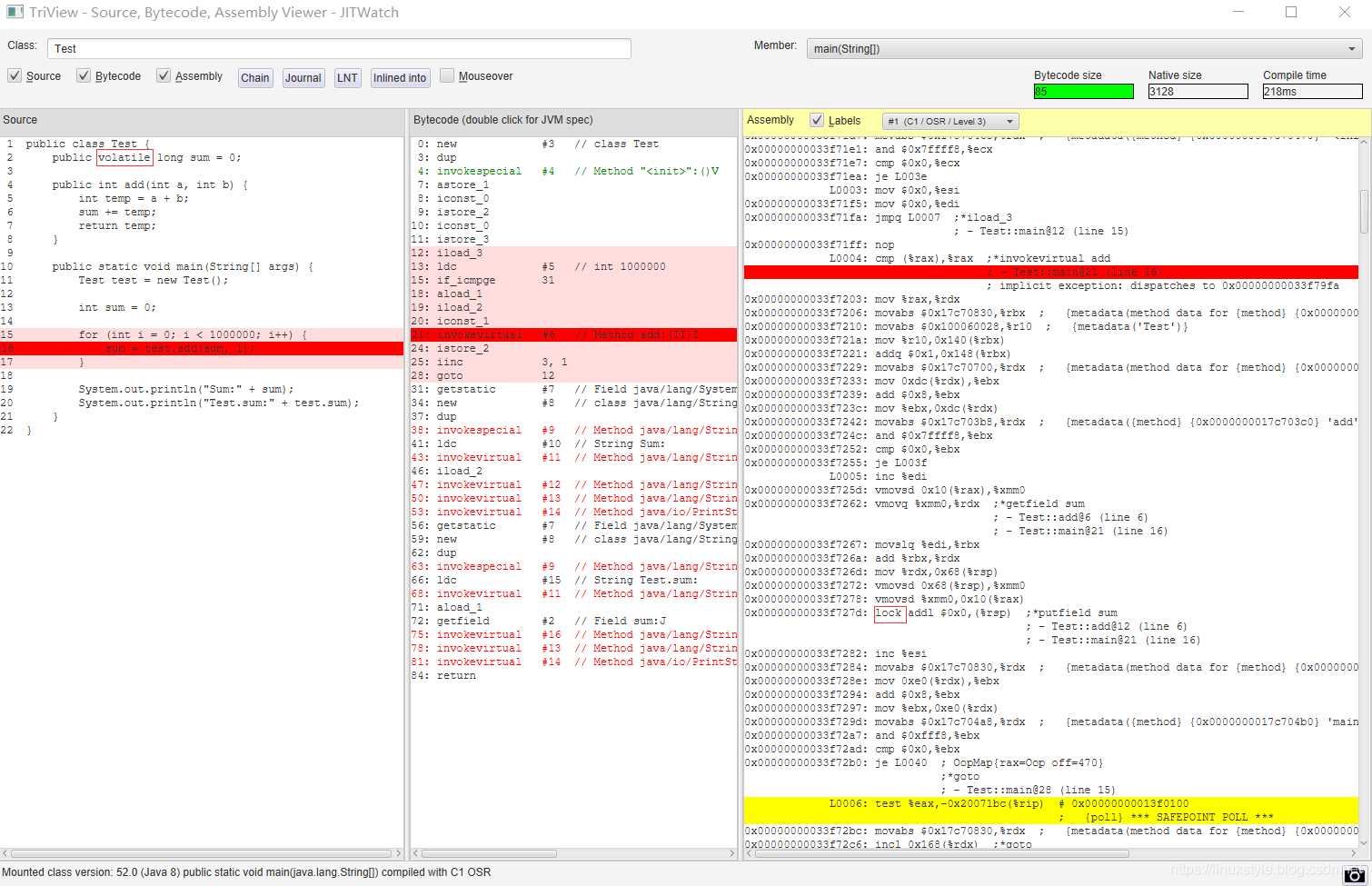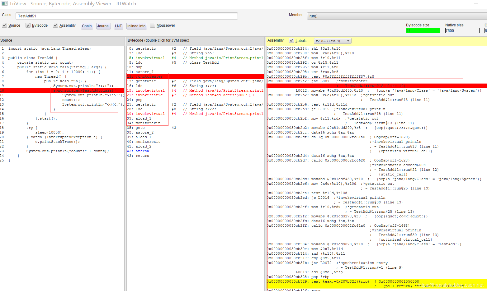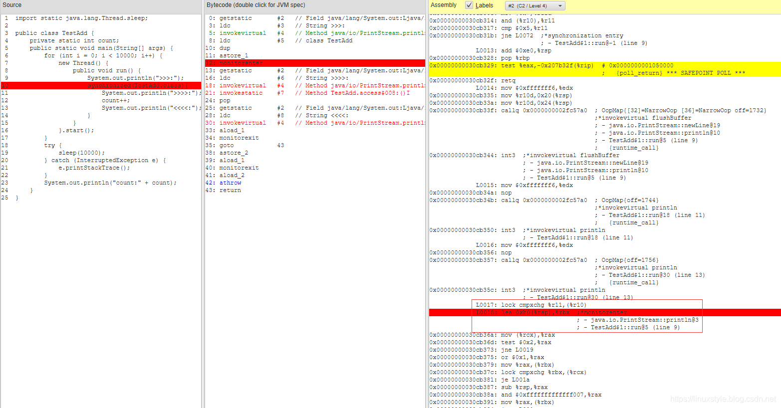 说要看汇编还是很有必要的,因为有些地方比如加锁其实还是通过汇编实现的,只看字节码不能看出底层实现。