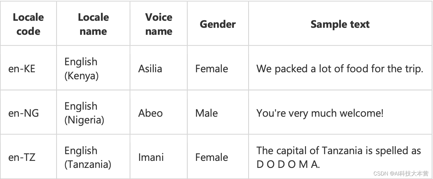 示例:en-KE Asilia 肯尼亚口音英语 (肯尼亚)