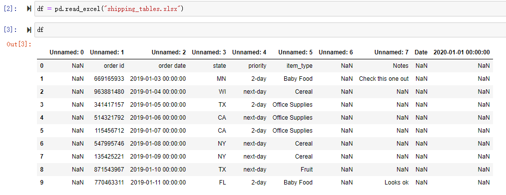 df = pd.read_excel(src_file,header=1,usecols=['item_type', 'order id', 'order date', 'state', 'priority'])这种做法在列的顺序改变但是列的名称不变的时候非常有用