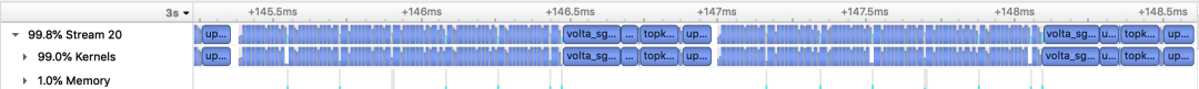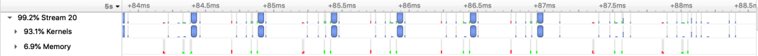 PaddleNLP Transformer翻译模型加速优化前后的Nsight Profling对比图
