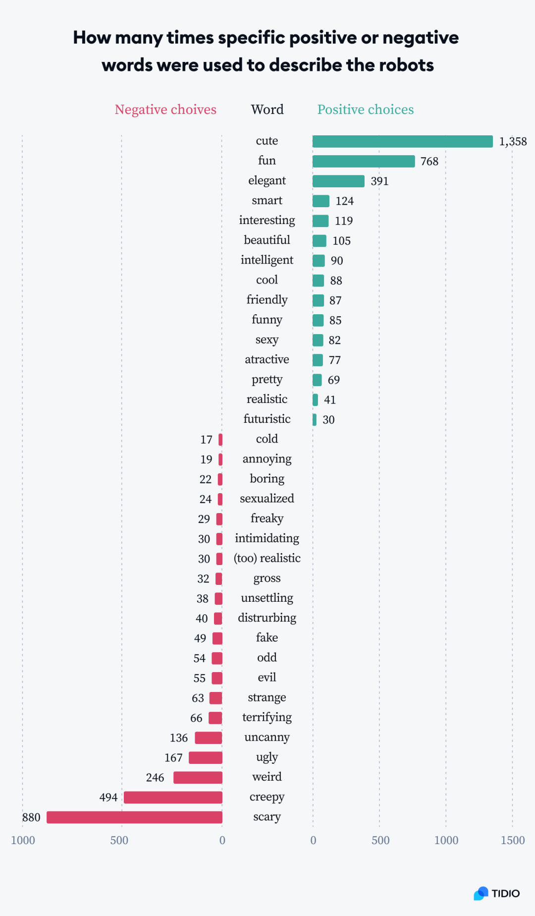 研究者们要求受访者为自己的选择辩护。以下是描述机器人的最常用的词。