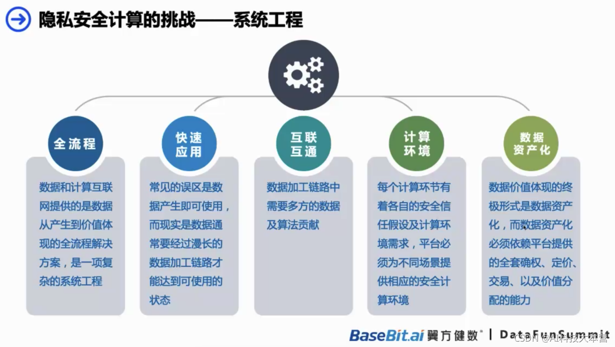 如此来看,隐私计算必然是一个系统工程。翼方健数从全流程、快速应用、互联互通、计算环境、数据资产化五大模块构建系统。