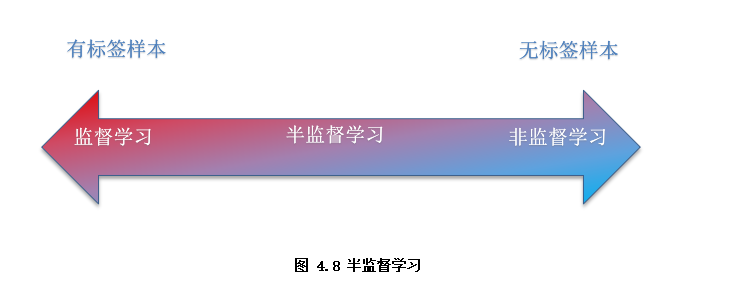 半监督学习是介于传统监督学习和无监督学习之间(如图4.8),其思想是在有标签样本数量较少的情况下,以一定的假设前提在模型训练中引入无标签样本,以充分捕捉数据整体潜在分布,改善如传统无监督学习过程盲目性、监督学习在训练样本不足导致的学习效果不佳的问题。按照应用场景,半监督学习可以分为聚类,分类及回归等方法。如下示例通过基于图的半监督算法——标签传播算法分类俱乐部成员。