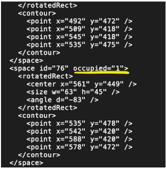 缺少信息的停车位数量可能会增加到10-15个停车位,但在运行一些代码后,我认为这可以手动修复:有太多的文件需要修复,只为了训练模型的顶层,避免这些文件比较容易。为了解析xml文件,我使用了内置的python包XML .etree.Elementtree。同样值得注意的是,边界框的坐标是以一个中心点的角度给出的,所以如果我们想要正确地解析和创建边界框,就必须进行一些调整。