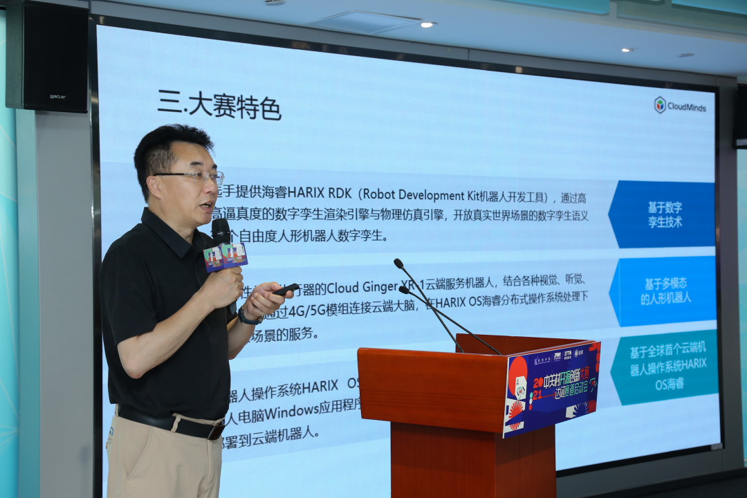 启动会上,中国科协科学技术传播中心成果转化服务处处长杜新峰发表致辞,中关村软件总经理张金辉介绍了中关村软件园开源生态建设情况以及科技向北产业活动,达闼创始人兼CEO黄晓庆发表“数字孪生+云端机器人——达闼与伙伴共创未来机器人生态”主题演讲。