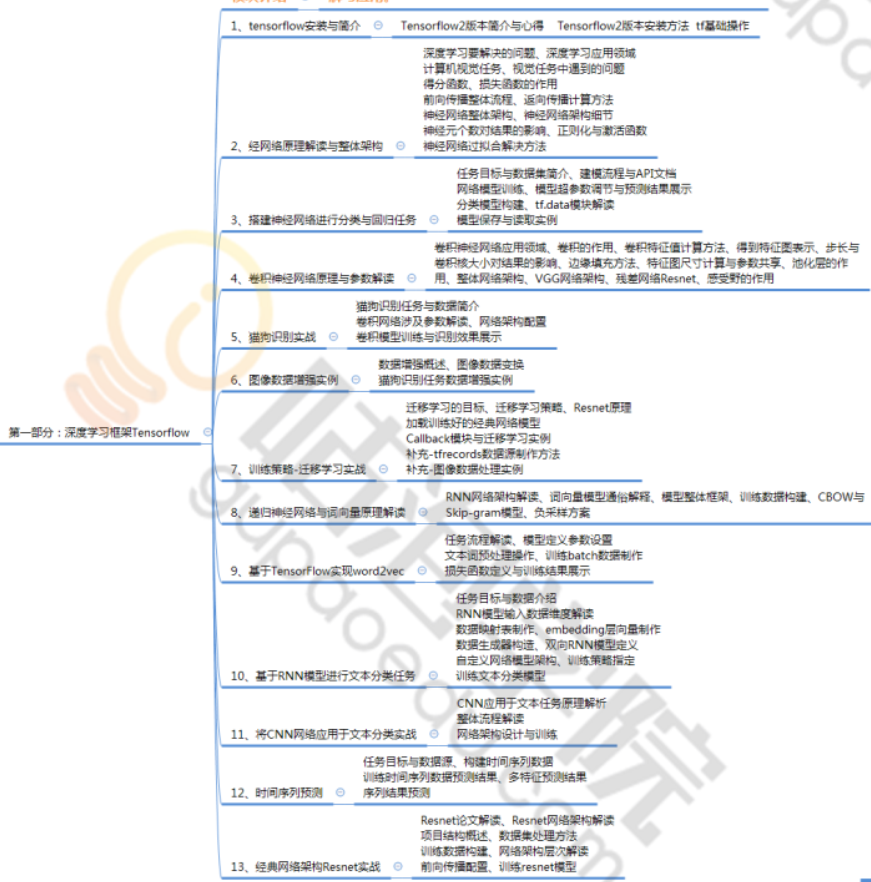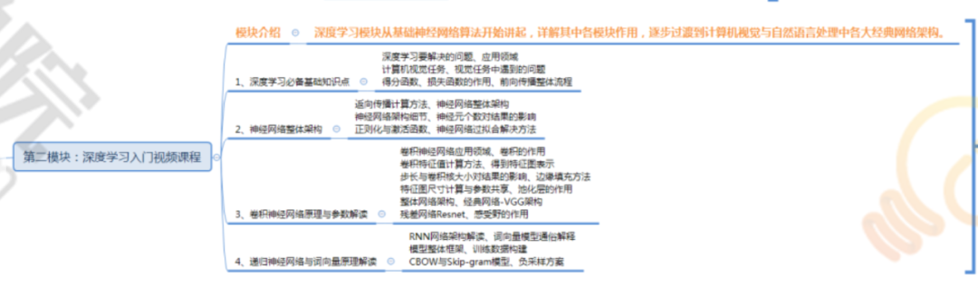 内容主要从Python核心模块入手,系统讲解图像处理模块,从工具、理论及项目实施方面入手,带领学员学习和掌握图像处理神经网络。同时,通过本训练营课程及四个项目实战,深度实践CNN等深度学习图像处理模型,实现文字识别,文本识别,图像识别等。深度学习深度学习面试题及答案所有资料扫码免费领取(网盘资源容易被和谐,建议需要的尽快领取)
