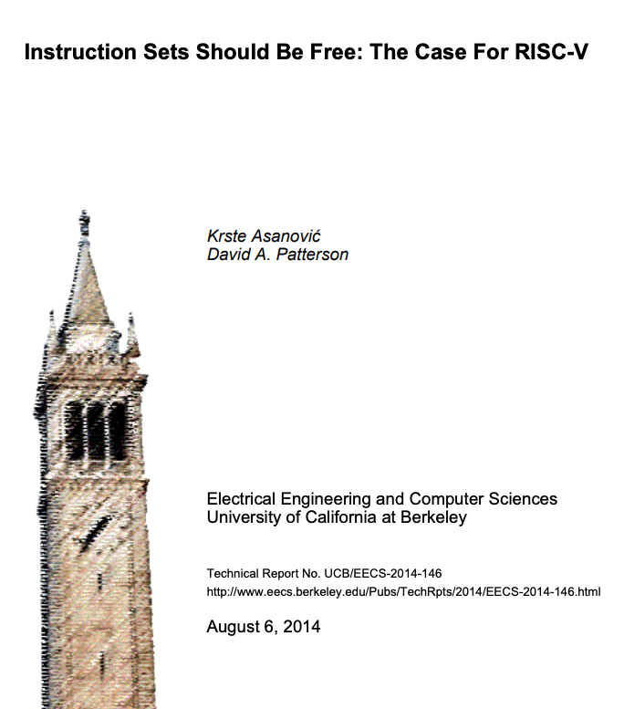 2014年,RISC-V的两位发明人David Patterson和Krste Asanovic写过一篇文章。