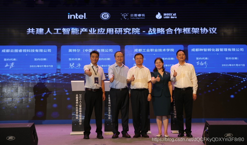 而为了加速人工智能落地发展,提升边缘计算技术力量。2021年7月7日,2021人工智能峰会暨英特尔&云图睿视AI生态发布会在成都举办。会上,英特尔携手成都云图睿视科技有限公司正式发布最新的算法商城解决方案,并正式揭牌人工智能产业应用研究院,加速成都“立足高新,面向全球”。