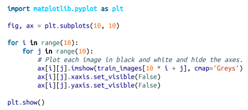 让我们绘制前100张训练图像,了解它们的形状(图19-1):