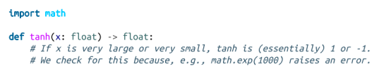一个流行的替代方法是tanh(“双曲切线”),它是一个不同的符号形函数,范围从-1到1,如果输入为0,则输出为0。tanh(x)的导数是1-tanh(x)**2,这使得该层易于构建: