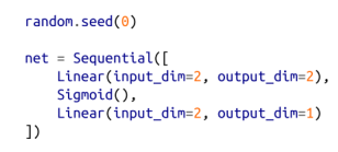 我们希望将神经网络视为层的序列,所以让我们想出一种将多层组合到一起的方法。所得到的神经网络本身是一个层,它以下面明显的方式实现了该层的方法: