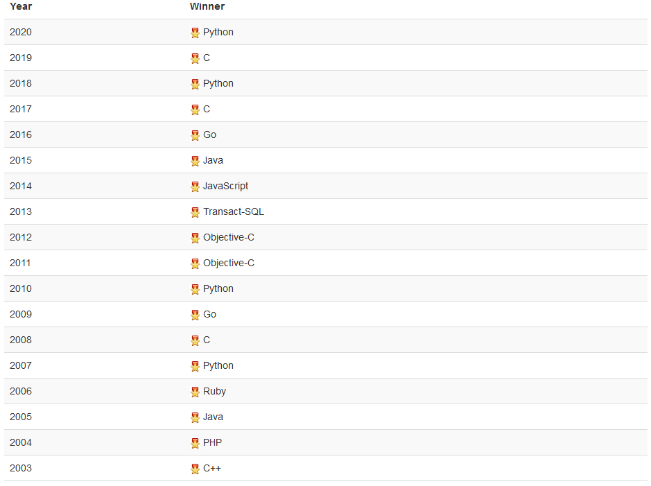 这个排行榜可以用来考察你的编程技能是否与时俱进,也可以在开发新系统时作为一个语言选择依据。