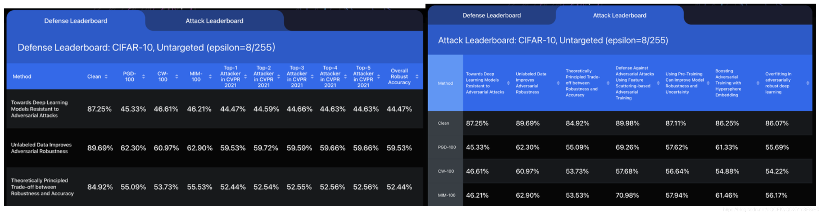 除此之外,本次发布的AI安全排行榜也包括了刚刚结束的CVPR2021人工智能攻防竞赛中诞生的排名前5代表队的攻击算法。此次竞赛吸引到了全球2000多支代表队提交的最新算法,进一步提升了该安全基准的科学性和可信性。