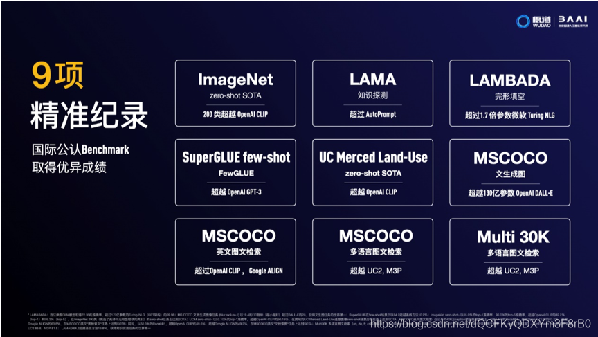 “悟道2.0”在世界公认的9项Benchmark基准测试任务上取得优异成绩,达到了精准智能。