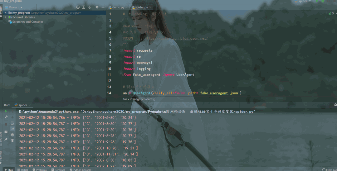 1# -*- coding: UTF-8 -*-2"""3@Author :叶庭云4@公众号 :修炼Python5@CSDN :https://yetingyun.blog.csdn.net/6"""7import requests8import re9import openpyxl