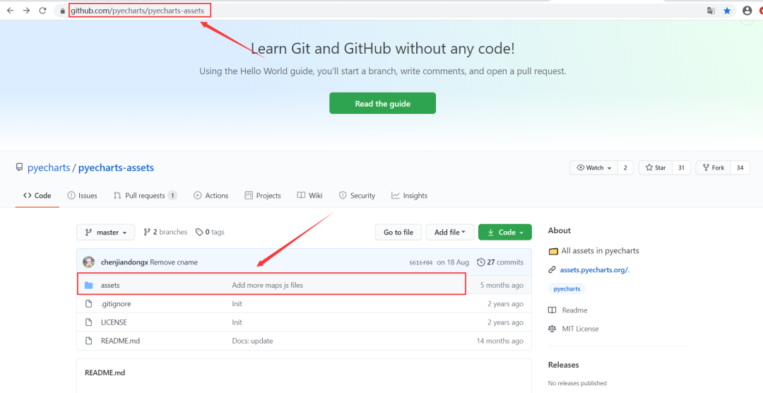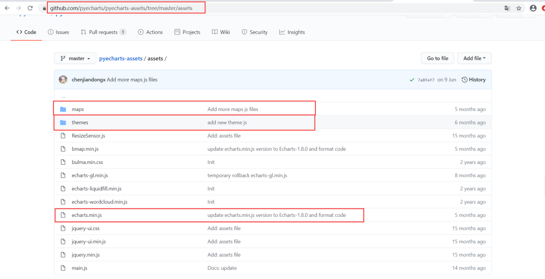解决办法:下载所需 js 文件到本地,修改资源引用地址,Github地址:https://github.com/pyecharts/pyecharts-assets看网站的介绍,pyecharts提供了更改全局 HOST 的快捷方式。