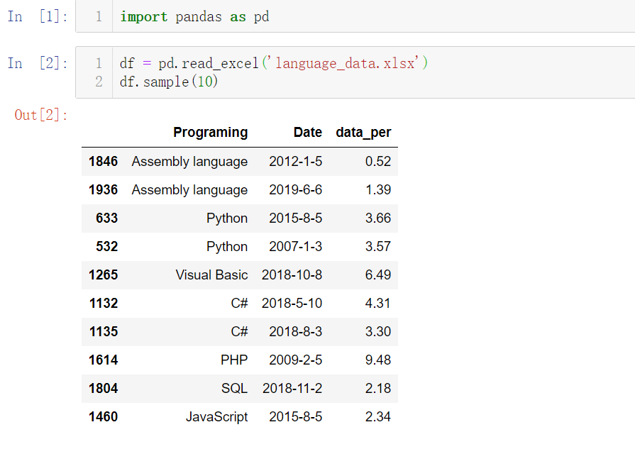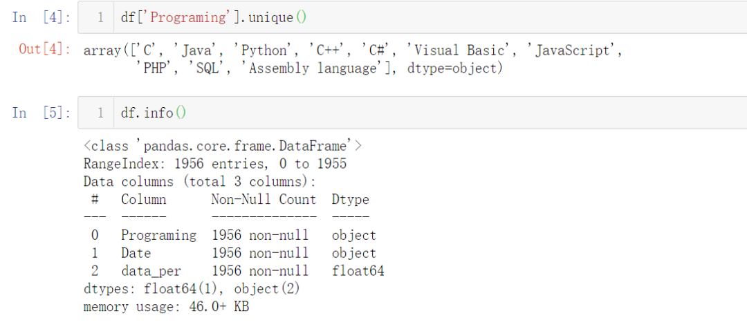 4df.sample(10)1df['Programing'].unique()3 df.info()数据可视化