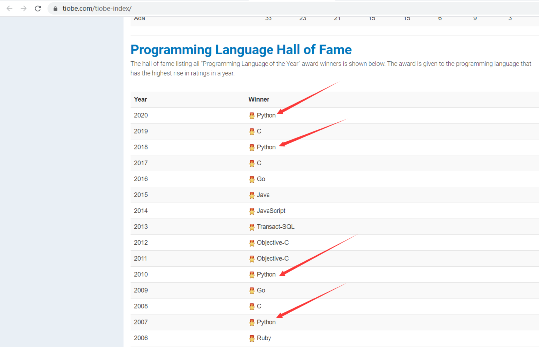 获取 TIOBE 官网里历年编程语言热度数据,目标URL:https://www.tiobe.com/tiobe-index/