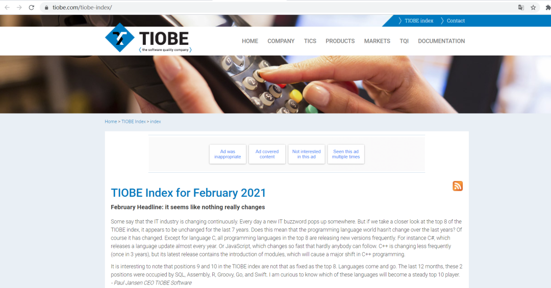 TIOBE 开发语言排行榜每月更新一次,依据的指数是基于世界范围内的资深软件工程师和第三方供应商提供,其结果作为当前业内程序开发语言的流行使用程度的有效指标。