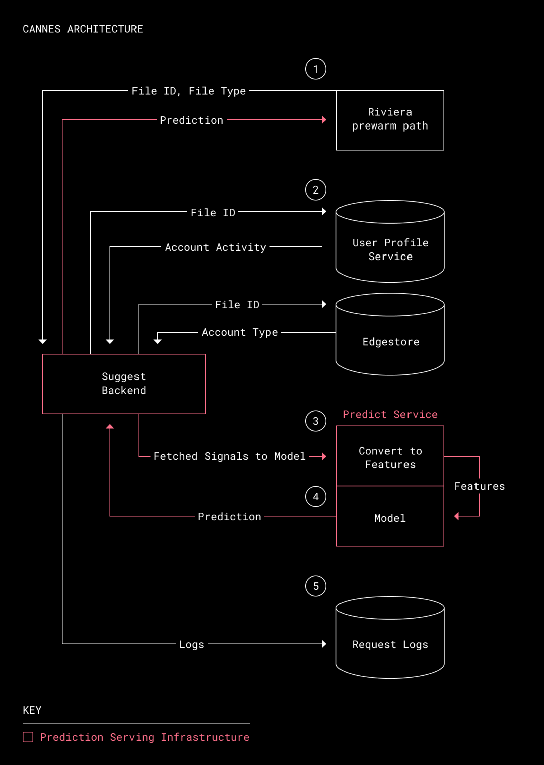 我们看到采用机器学习可以降低这些成本,因为有些预生成的内容从不会有人查看。如果我们可以有效地预测某个预览是否会被使用,则只需预热我们确信一定会被查看的文件,从而节省计算和存储空间。我们的这个项目名叫 Cannes(戛纳),这个名字的灵感来自法国戛纳电影节。