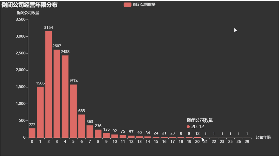 28 title_opts=opts.TitleOpts(title='倒闭公司经营年限分布'),