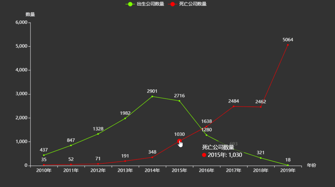 2010 年来,历年出生及死亡的公司数量趋势如下图: