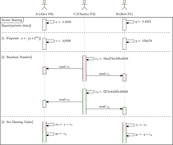 我们可以看到,在处理隐私数据输入的整个过程中, P0无法知道 Y 值, P1 无法知道 X 值, P2 无法知道 X 或 Y 值。