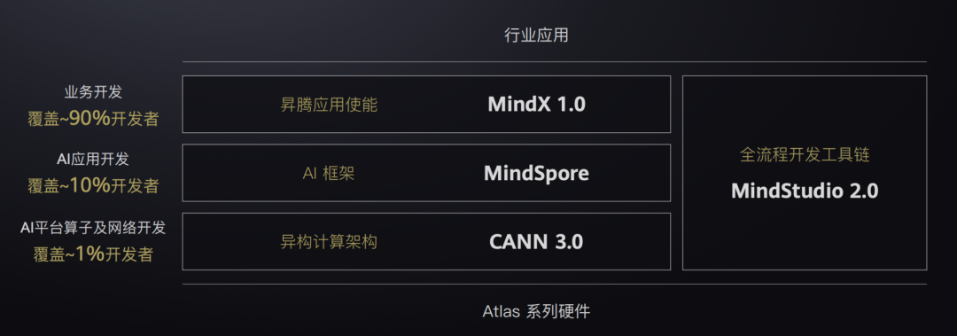 硬件只是底层的基础设施,想要充分发挥昇腾的计算能力,让 AI 真正落地,就需要软硬协同,打造完整的软件栈,积极构建 AI 开发者生态。