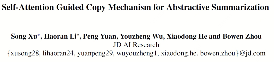 今天,我们就将为大家解读其中的一篇:Self-Attention Guided Copy Mechanism for Abstractive Summarization