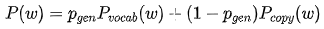 其中 为生成模式的权重, 为生成概率,为复制概率。本文采用了编码器-解码器之间的注意力权重 作为复制概率: