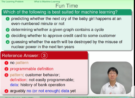 比如通过电脑让电脑学会预测股票。利用十年前的数据去学习,告诉我明天该怎么去投资,如果机器真的做到了,那么说明机器真的学到了这些。这是我们希望机器学习能做的事情。