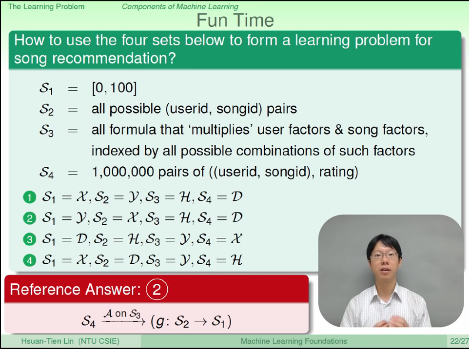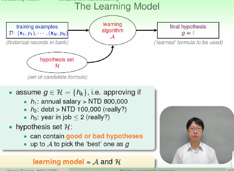 机器学习的定义:从资料出发,机器学习算法要算出一个假说(hypothesis)g,我们希望这个g要很接近我们最渴望的那个f。
