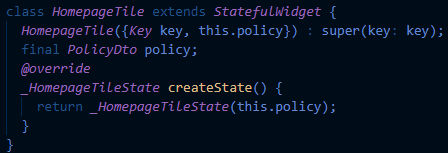 再来看看HomepageTile小部件。这是我们的第一个有状态的UI。每个有状态的小部件都包含小部件声明(图9)及其状态,而状态才是最神奇的部分。