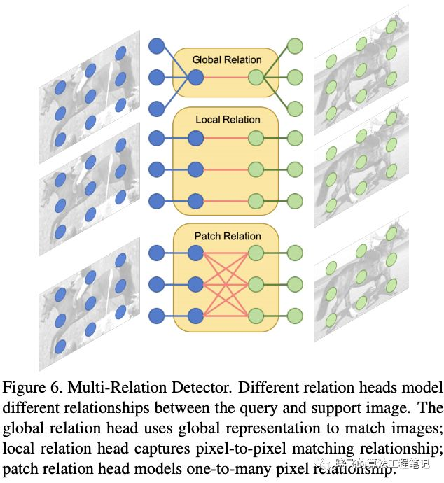 RPN后面一般会接一个检测器用于对proposal进行重新评估和调整,而论文则希望检测器能够有强大的类别区分能力,提出了多关系检测器(multi-relation detector)来度量相似性.该检测器包含3个attention相似性模块,将3个模块的分数求和作为最终的匹配分数。对于大小均为的辅助特征和查询特征: