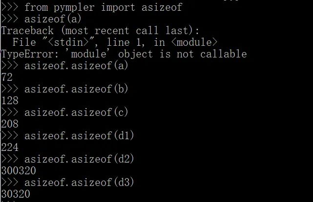 相比之下,pympler 所考虑的内容要多很多,入口在这: