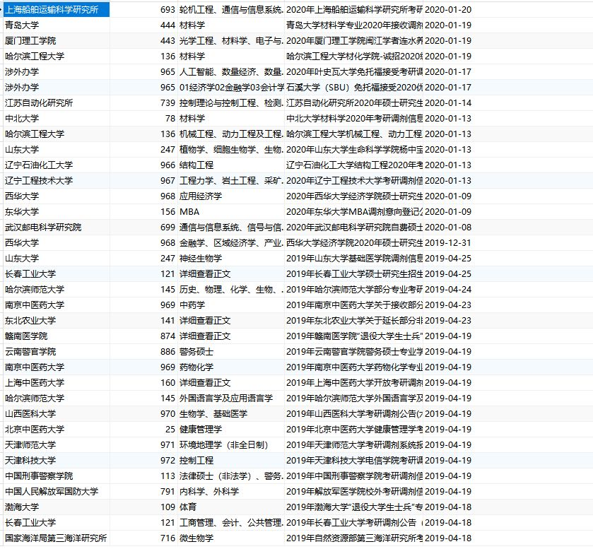 大学名称、专业名称以及调剂标题名称,均在列表中。那么: